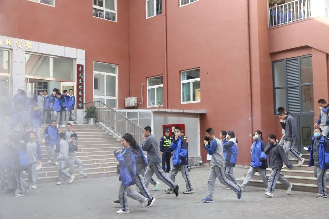 急促的消防警报声划破校园宁静,演练正式启动。班主任迅速指引学生用湿毛巾捂住口鼻,弯腰低姿沿既定路线撤离,楼道值守教职工有序疏导,全校师生默契配合、行动迅速,仅用1分54秒便全部安全集结至操场,全程秩序井然,充分体现了同学们良好的安全意识和应急逃生能力。