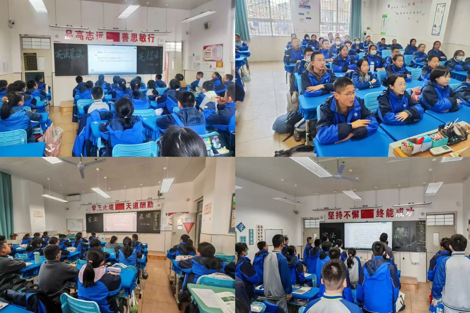 与此同时,学校以宪法宣传周为契机,扎实开展宪法晨读活动,学生们逐字逐句诵读宪法条文,字字铿锵、句句坚定,将宪法精神内化于心;组织学生进行《宪法伴我们成长》主题歌曲传唱,悠扬的旋律在校园中回荡,让法治信仰随歌声传递,让宪法精神在传唱中升华。