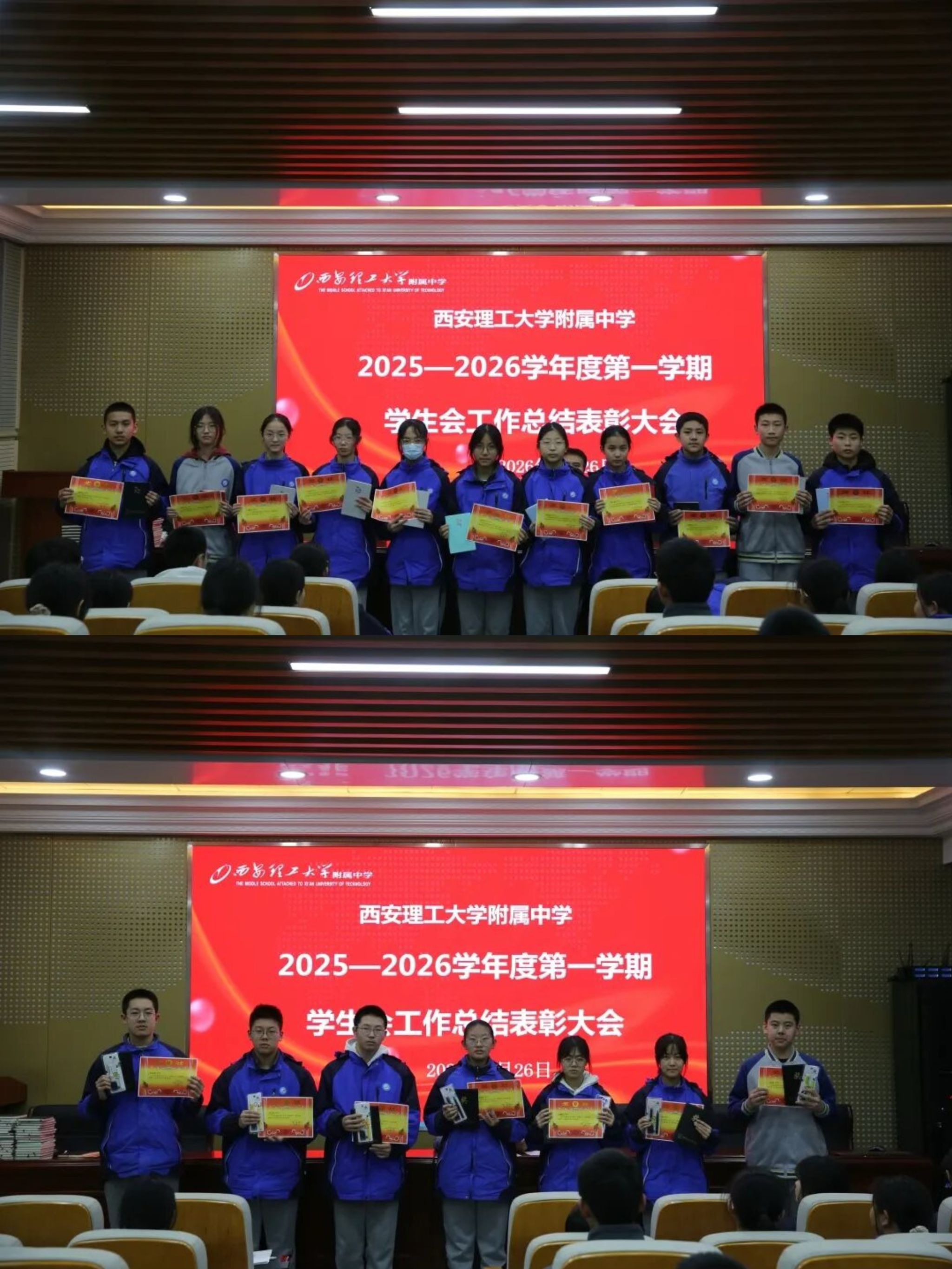 岁末收官,硕果盈枝。2026年1月26日,西安理工大学附属中学2025-2026学年第一学期学生会期末工作总结暨表彰大会顺利召开,学生会各部门部长及全体成员参会,政教主任张吉友主持会议并总结。